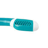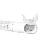 The snorkel features a dry top to prevent water from entering when submerged and a purge valve makes for easy clearing of any water that inadvertently enters the mask. The flexible silicone connector conforms to the face reducing jaw fatigue, and the silicone mouthpiece is comfortable and long-lasting.