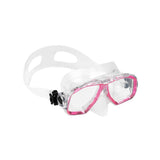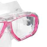 The mask features tempered glass dual lenses and provides a great view of the underwater world. The mask is easy to clear, and the soft nose pocket makes equalizing easy.